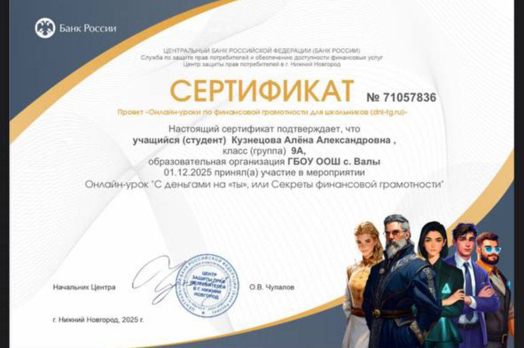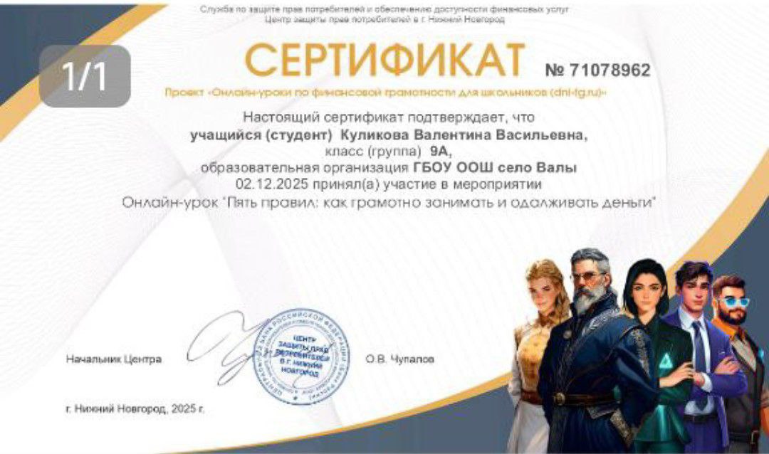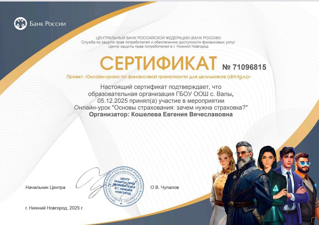 Государственное бюджетное общеобразовательное учреждение Самарской области основная общеобразовательная школа с. Валы муниципального района Ставропольский Самарской области